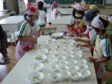 うどん作り。しっかり踏んでコシを出さないとね。 |